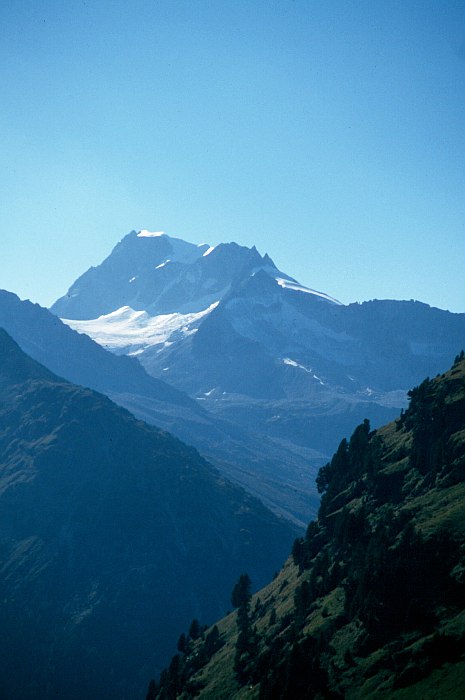 Links Hochgall (3436 m) mit Patscher Kees, rechts Große Ohren Spitze (3101 m)