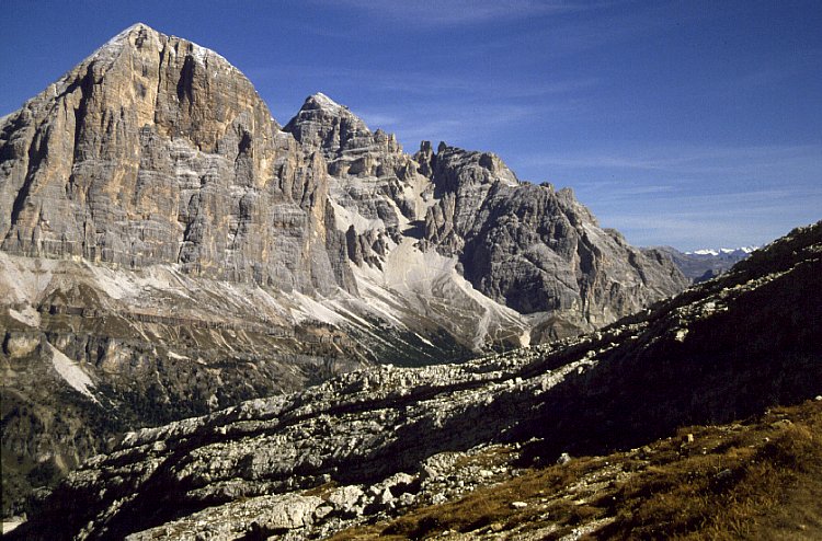 Von links: Tofane di Rozes o. I., 3225 m, Tofane di Mezzo o. II., 3244 m, und Punta Ana, 2731 m