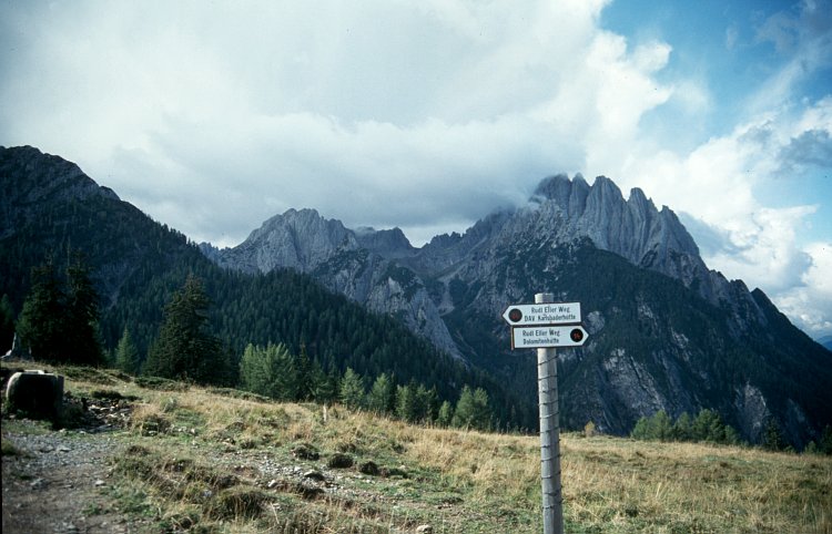das Spitzkofelmassiv aufsteigt, mit dem Spitzkofel (2718 m), dem Oberwalder Turm (2612 m)