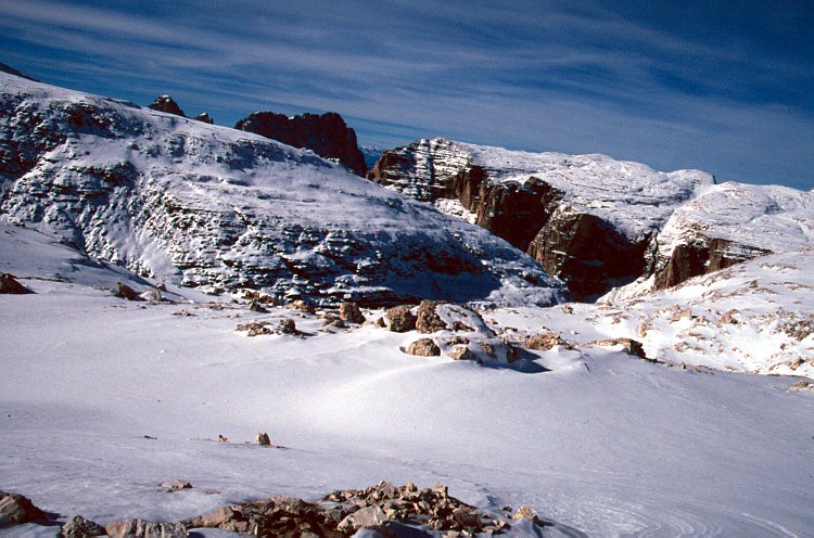 Auf der Sella-Hochfläche, im Hintergrund der Langkofel (3181 m)