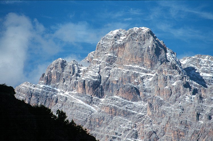 Piz Popena (3152 m), zum rechten Bildrand hin Cima di Mezzo (3154 m)