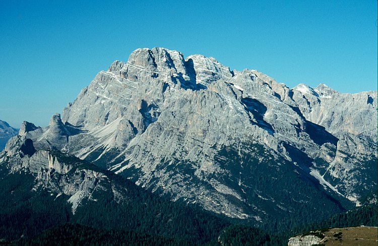 dahinter M. Cristallo (3221 m). Noch etwas weiter rechts die Cima die Mezzo (3154 m).