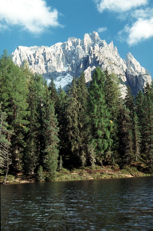 Hinter dem Lago d'Antorno (1866 m) steigen wild und schroff die zentralen Bergmassive der Cadini-Gruppe mit der Cima Cadin di S. Lucano (2839 m) als höchstem Gipfel auf.
