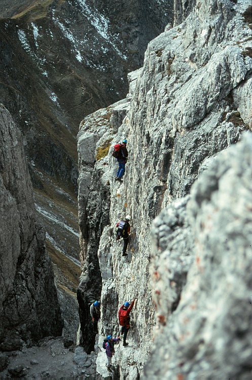 Kletterer überwinden die letzten vertikalen Meter