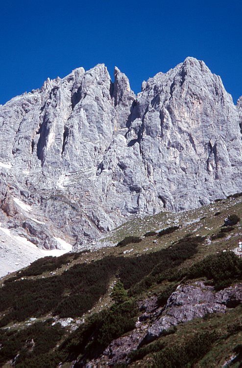 Die höchste Erhebung des Kaisergebirges, die Ellmauer Halt (2344 m) von Süden.