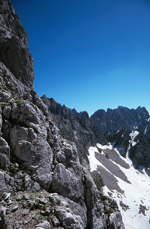 Der Wilde Kaiser gibt sich schroff. Blick zur Nördlichen Törl Spitze (2304 m) im Hintergrund.