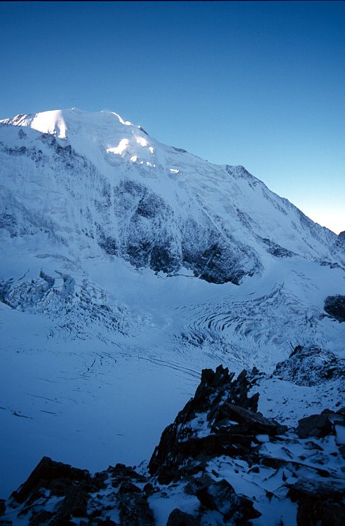 Aiguilles de Bionnassay (4052 m) und die Aiguille de Tricot (3665 m). Davor der Glacier de Bionnassay.