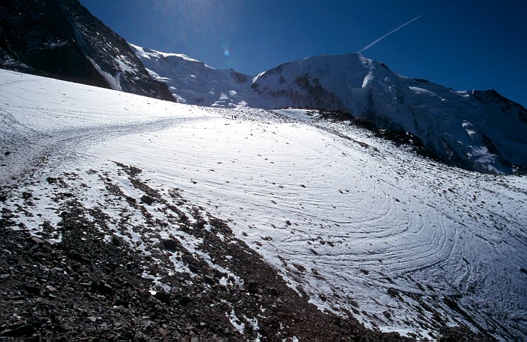 Unten im Vordergrund der Glacier de Tête Rousse, darüber