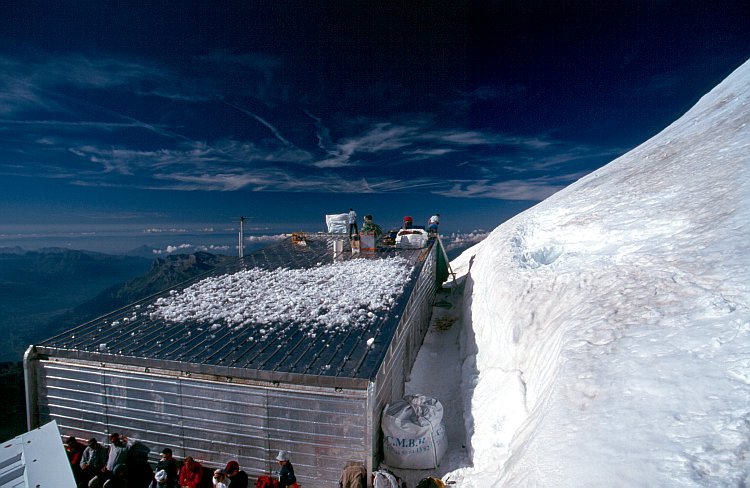 Das Refuge de l`Aiguille du Goûter (3817 m).