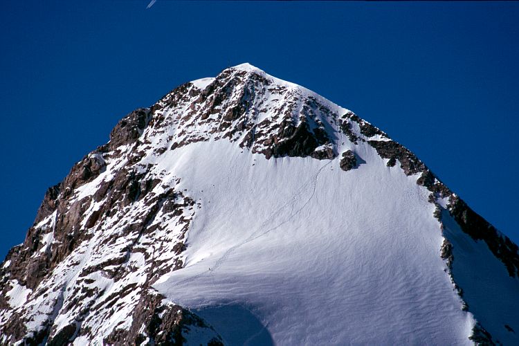 Vom Langenferner Joch (Pso. del Cevedale, 3266 m) Blick auf die Königs Spitze (3851 m).