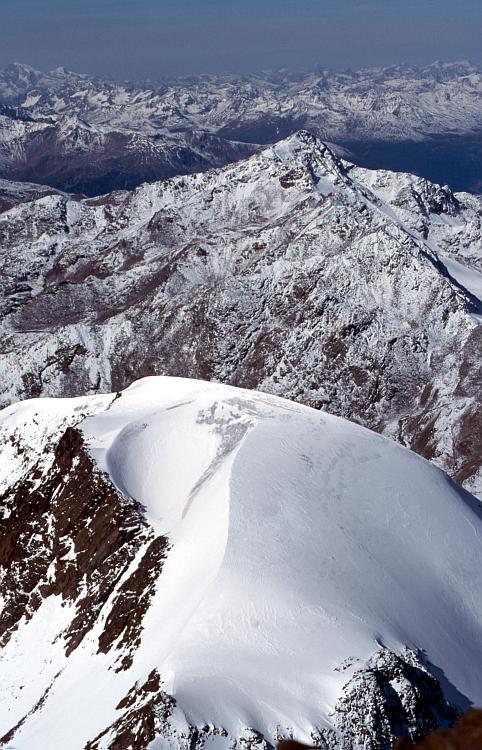 Blick vom Monte Cevedale (3769 m). Unten der Monte Pasquale (3553 m), darüber der Monte Confinale (3370 m).