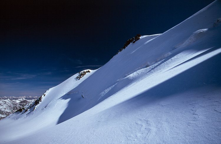 Die beiden Zufallspitzen, links die Vordere (3700 m), in der Mitte die Hintere (3757 m).