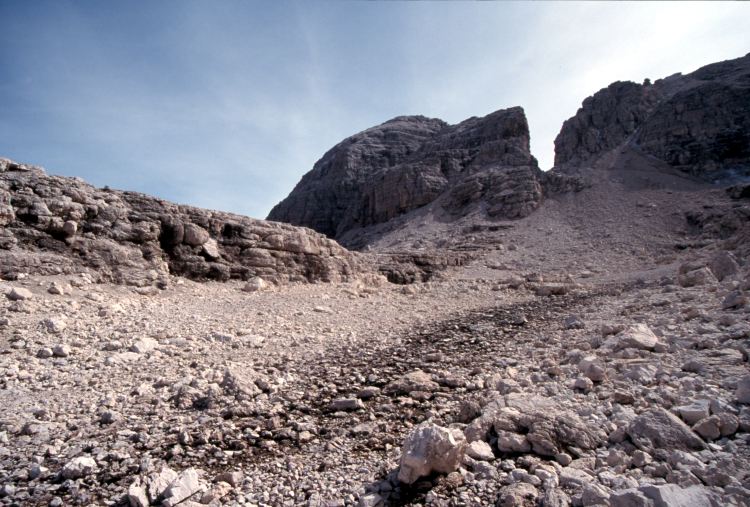Im Sella-Massiv. Die Sella-Hochfläche präsentiert sich steinig, karg und abweisend.