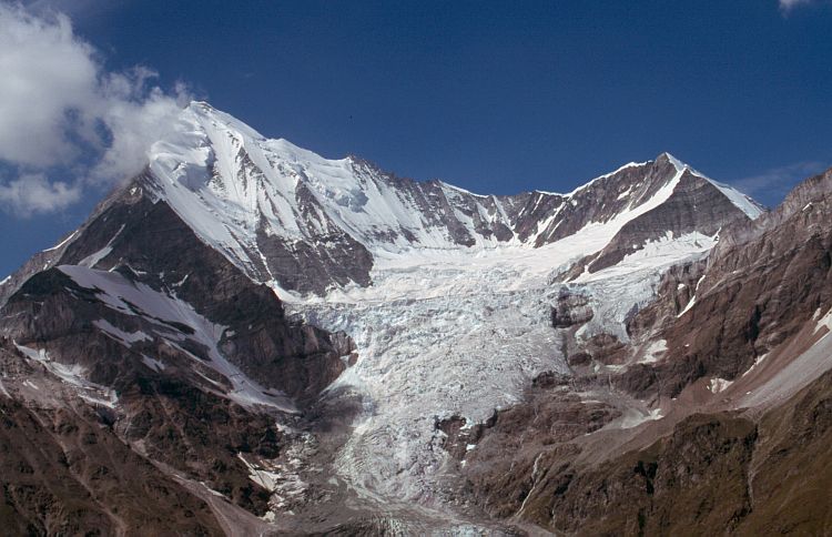 darunter der Bisgletscher. Rechts das Bishorn (4153 m).