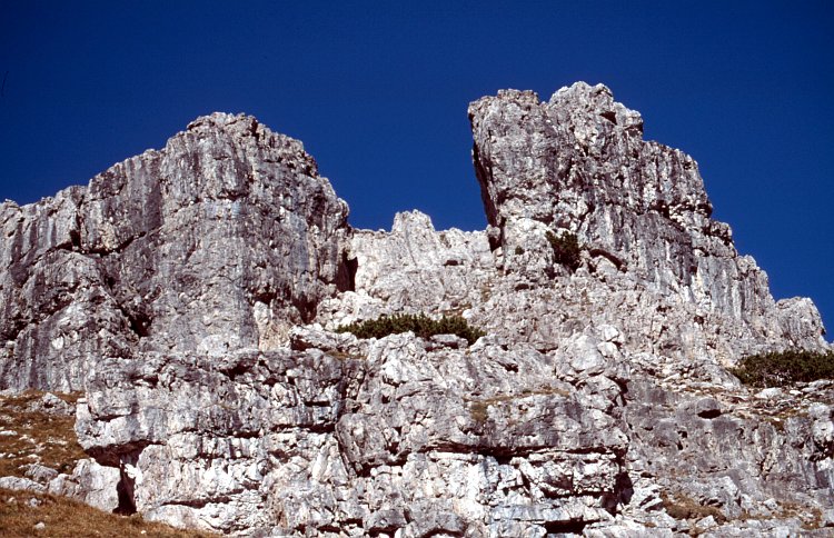 Die sonnenbeschienene Ostflanke des Hochvogels (2592 m).