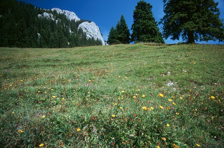 Im Hintergrund der Felsklotz des Brünnsteins (1619 m).
