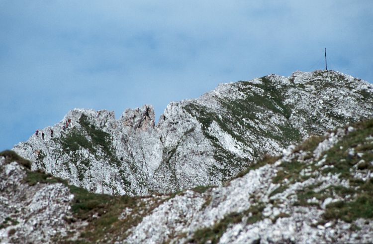 Kemacher (2480 m). Links eine Gruppe beim Abstieg.