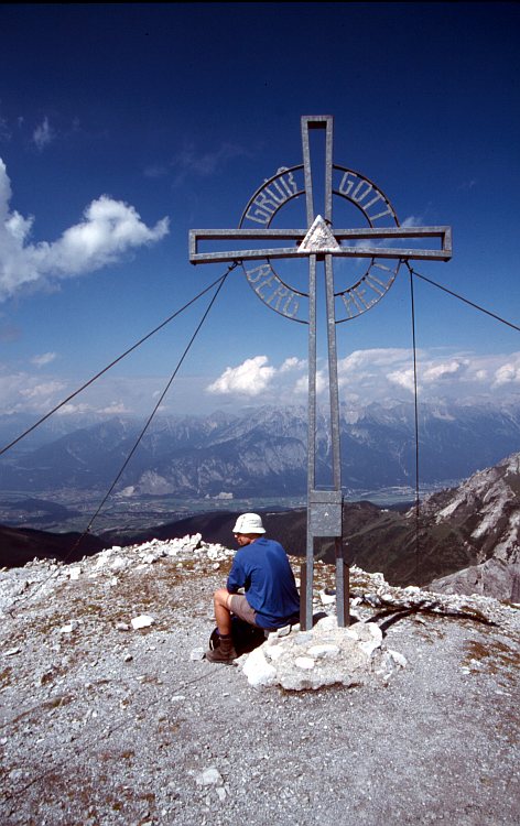 Au dem Gipfel der Marchreisenspitze (2620 m) mit Gipfelkreuz.