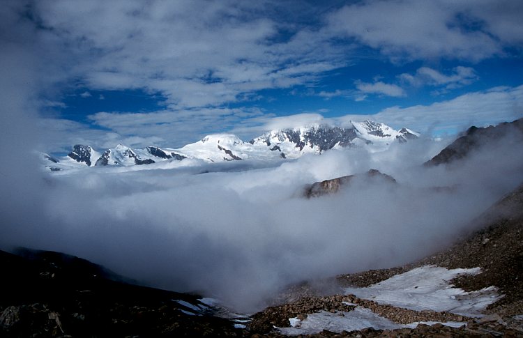Der Blick geht vom Zwischbergenpass (3268 m)