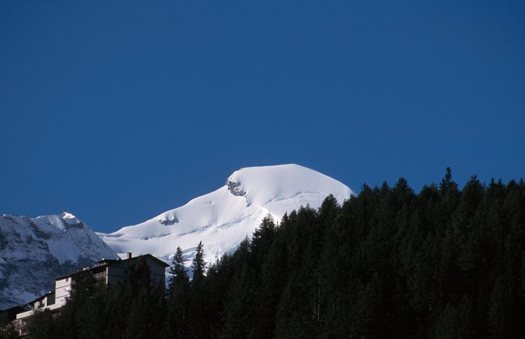 Strahlend weiß präsentiert sich das Allalinhorn (4027 m) am Morgen.