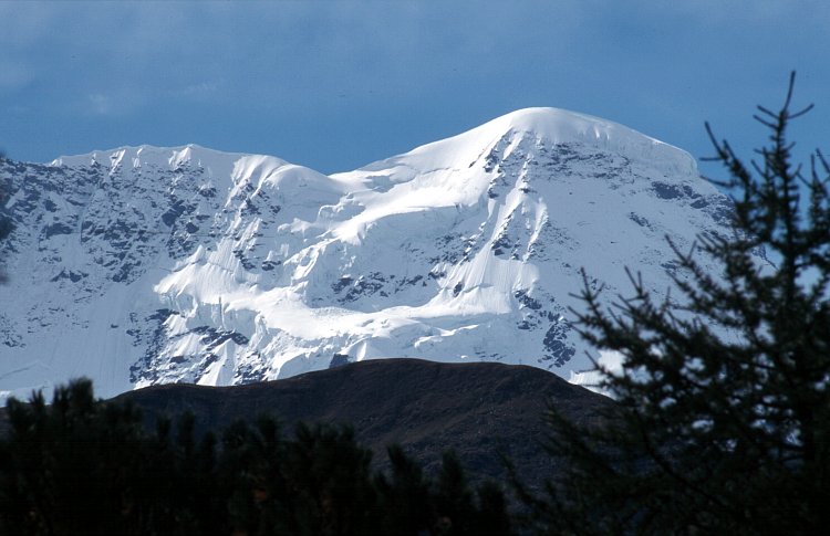 Der Breithorn-Westgipfel (4165 m), rechts. Links der Mittelgipfel (4159 m).