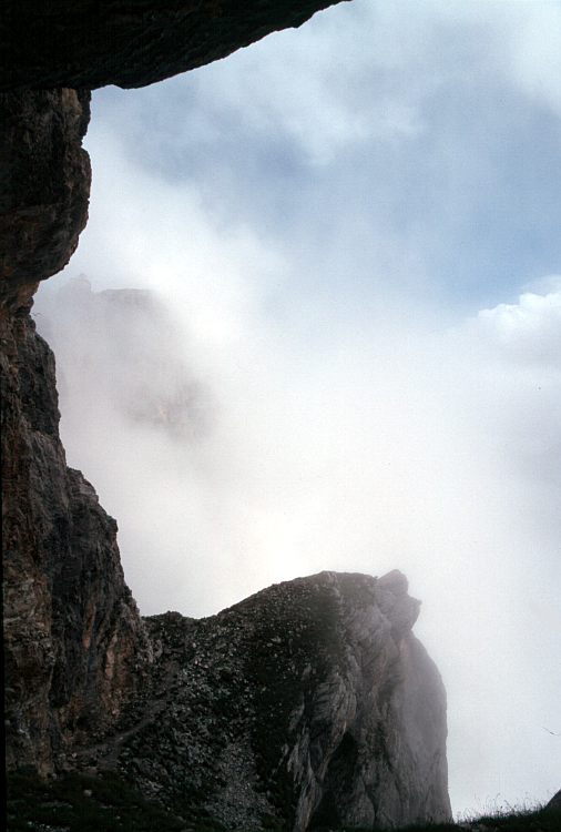 Durchsteigung der Gadmerflue, Felsvorsprung und Überhang.