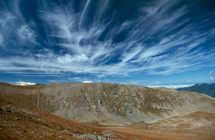 Der Wheeler Peak (4011 m). Im Bild zu sehen ist das nördlich des Gipfels gelegen La Cal Basin, der Gipfel selbst befindet sich links außerhalb des Bildes.