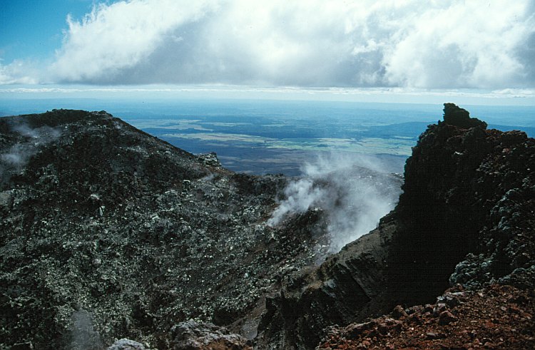 Auf dem Kraterrand, Dampfwolken steigen auf.