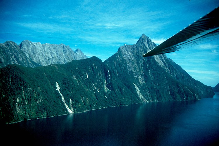 Mitre Peak (1692 m) mit dem Milford Sound, dahinter die Llawrenny Peaks (1933 m)