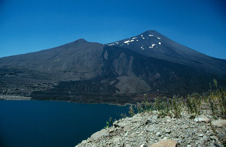 Im Vordergrund die Laguna del Laja, in die sich Lavaströme ergießen.