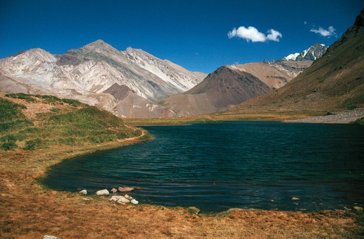 Tiefgrüner, kleiner Bergsee in ansonsten recht karger Umgebung.