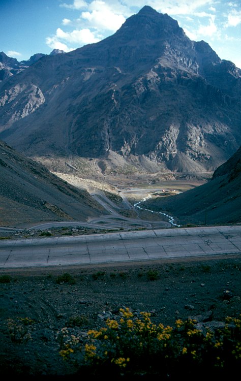 Serpentinenreiche Straße auf chilenischer Seite zum Paso de Bermejo, 3863 m, dem wichtigsten Übergang nach Argentinien.