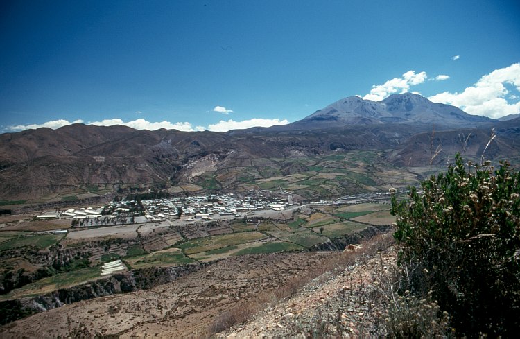 Nevados de Putre mit dem Cerro Larancagua (5408 m) als höchstem Gipfel. Darunter das Dorf Putre (3500 m). Im Gegensatz zur Aufnahme von gleicher Stelle vor fast genau 5 Jahren präsentieren sich die Nevados dieses Mal schneefrei.