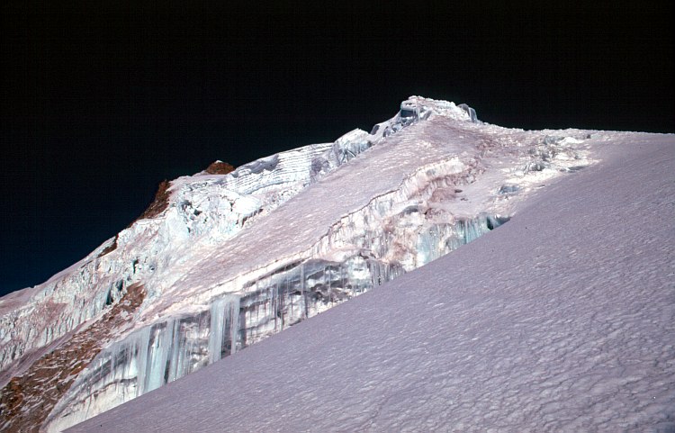 Huayna Potosí (6088 m); bizarre Eisformationen.
