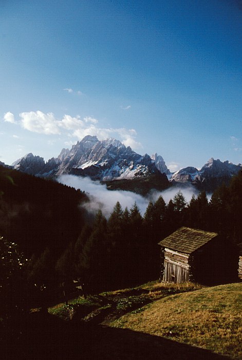 Von links: Neunerkofel (2582 m), Rotwand Spitze (2965 m) oder Zehner, daneben Elferkofel (3092 m), im Hintergrund der Zwölferkofel (3094 m), ganz rechts Einserkofel (2698 m)