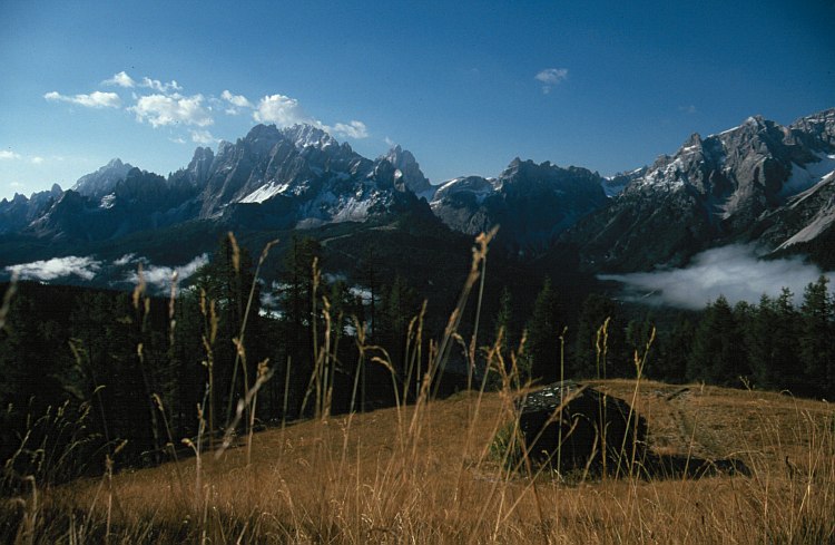 Von links: Cima Bagni (2983 m), darunter Neunerkofel (2582 m), Cima Popera (2964 m), knapp daneben Hochbrunner Schneid