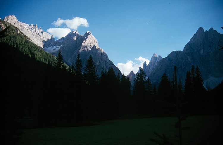 Von links: Zehner (2965 m) oder Rotwand Spitze, Elferkofel (3092 m), dann Zwölferkofel (3094 m), rechts Einserkofel (2698 m)