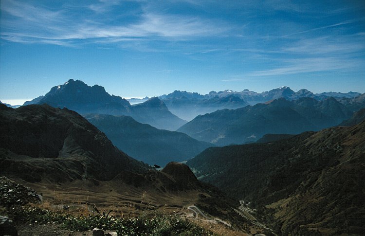 Monte Civetta (3220 m), im Hintergrund die Pala-Gruppe mit der Cima della Vezzana (3192 m)