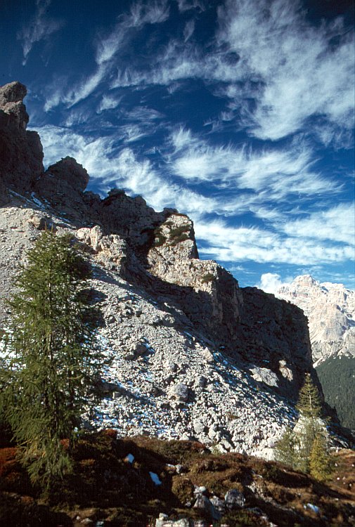 Cadin dei Tocci; im Hintergrund die Gruppe del Cristallo mit Piz Popena (3152 m).