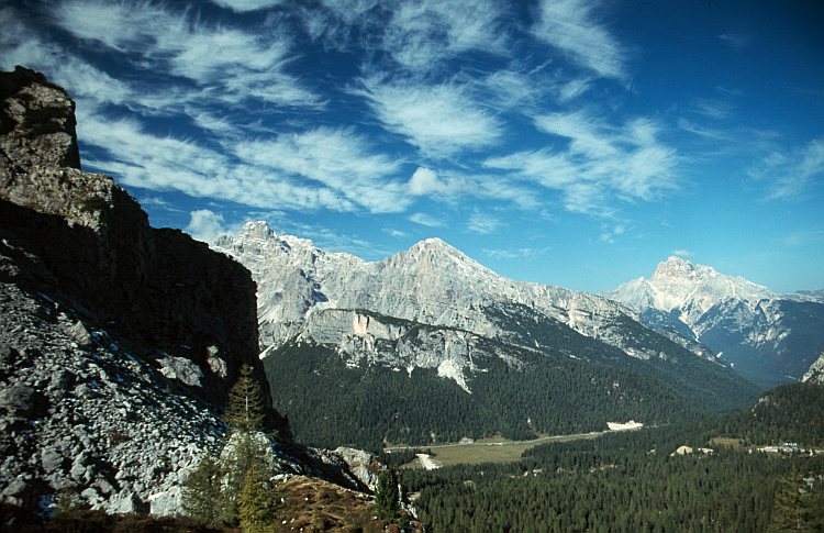 Piz Popena (3152 m), Cristallino (2775 m) und rechts die Croda Rossa oder Hohe Gaisl (3146 m)