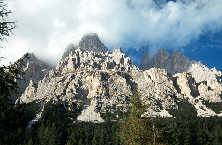 (2328 m), knapp links daneben der höchste Gipfel, der Monte Cristallo (3221 m).