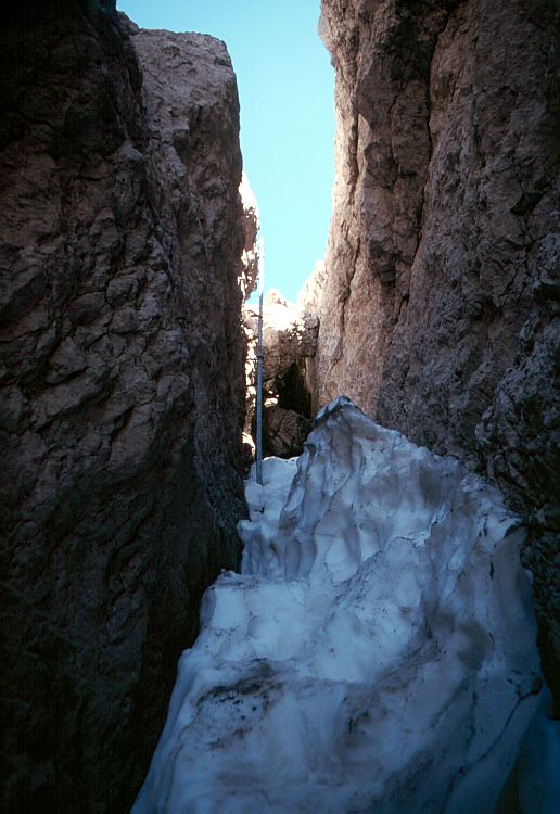 zuvor aber Schneereste, die sich in schattigen Löchern