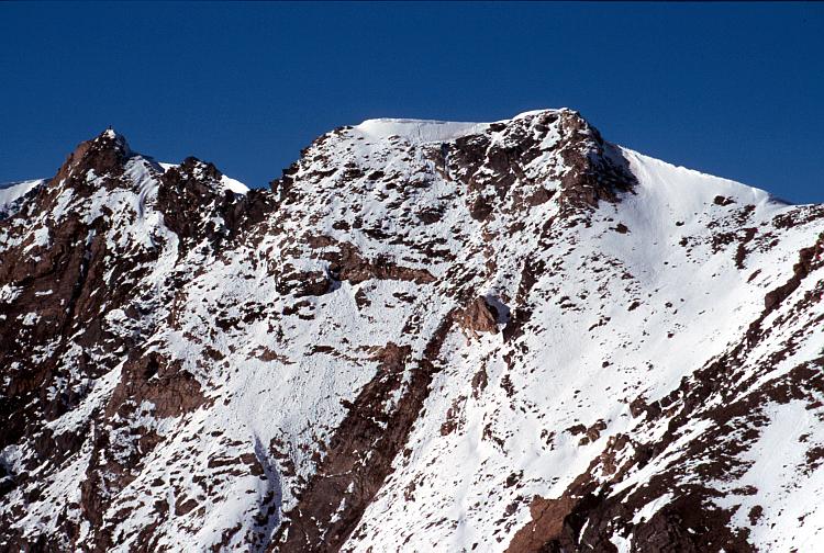 Blick vom Langenferner Joch (3266 m, Pso. del Cevedale) auf die Südflanke des Schrötterhorns (3386 m).