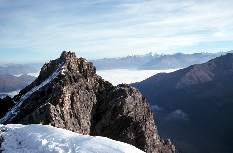 Beim Aufstieg auf den Ortler geht der Blick zurück auf die Tabaretta Spitze