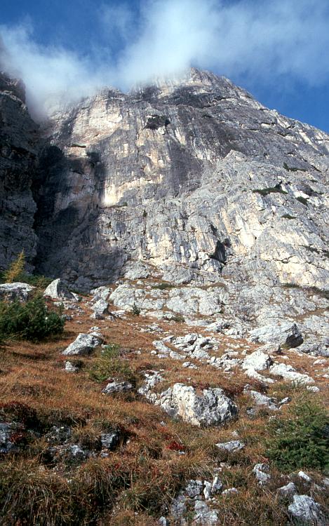 Die Nordabstürze des Sella-Massivs in der Nähe des Grödner-Jochs.