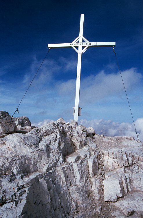Das Gipfelkreuz auf der Pisciadù Spitze (2985 m).