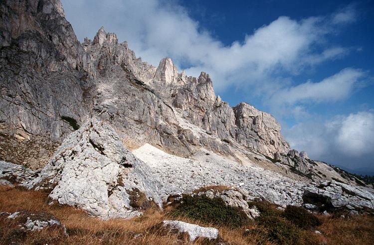 Wild zerklüftete Ostflanke der Ra Gusela (2595 m).