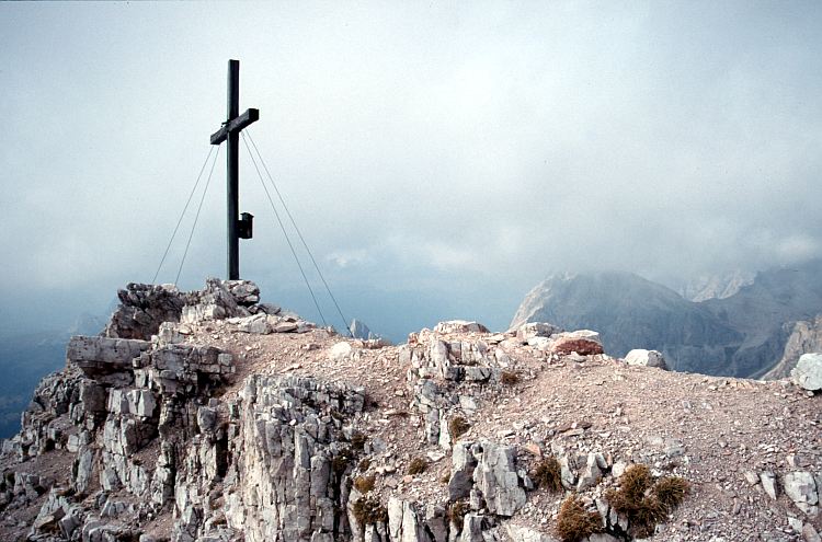 Das Gipfelkreuz auf dem Gipfelplateau des Averau (2647 m).