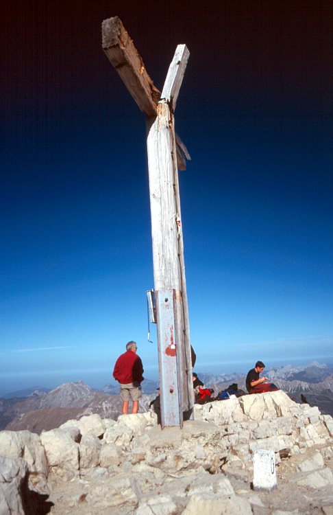 Das Gipfelkreuz auf dem Hochvogel (2592 m).