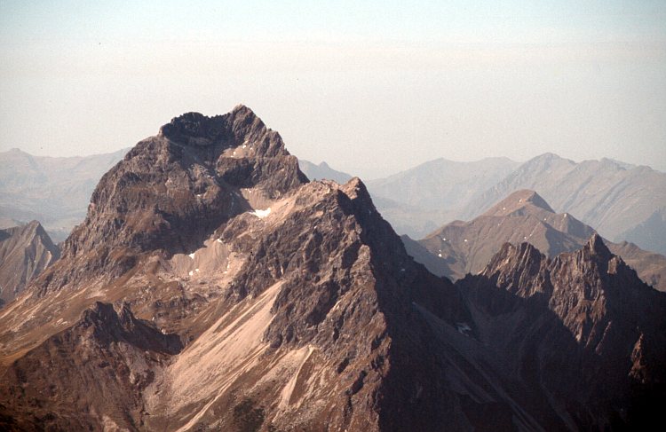 Der Widderstein (2533 m) mit seiner Südostflanke. Rechts außen der Kleine Widderstein (2236 m).